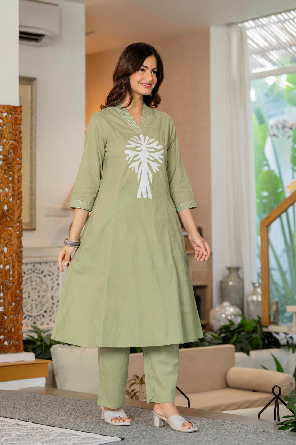 Elevate your ethnic wardrobe with this Green Embroidered Cotton Kurta and Pant Set. Crafted from breathable cotton, it offers all-day comfort while featuring intricate embroidery that adds a touch of elegance. The coordinated kurta and pant create a harmonious look perfect for festive occasions or casual gatherings. Lightweight and stylish, this set ensures you stay cool and confident wherever you go.