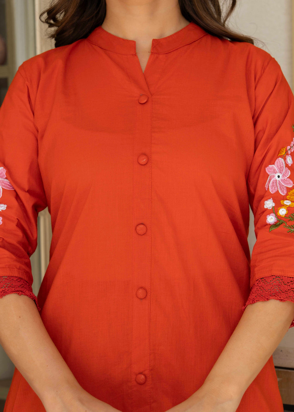 Elevate your wardrobe with this Rust Embroidered Cotton Co-Ord Set, featuring intricate embroidery on breathable cotton fabric for all-day comfort. Perfect for casual outings or festive occasions, this coordinated set combines style and ease, making it a versatile addition to your collection. Its rich rust hue adds warmth and vibrancy, ensuring you stand out effortlessly.